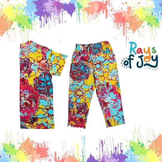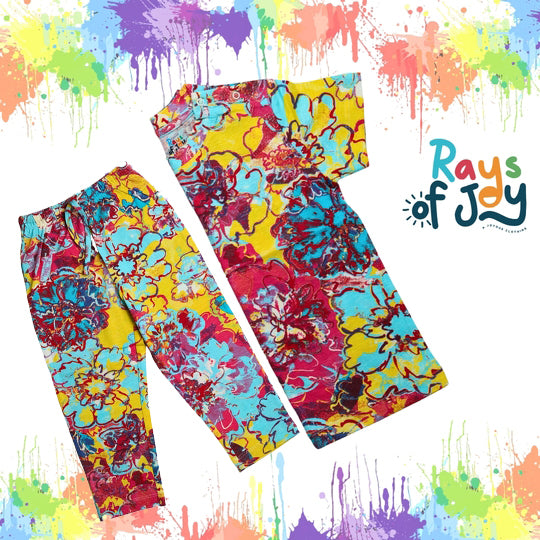 This blossom burst print coord set for kids is a fun and vibrant addition to any child's wardrobe. The set includes a comfortable top and coordinating bottoms, both featuring a playful and colorful die print. Made from high-quality, durable materials, this set is perfect for everyday wear and is sure to become a favorite in any child's closet. Whether for playtime or a special occasion, this coord set is both stylish and practical, making it a must-have for any young fashionista.