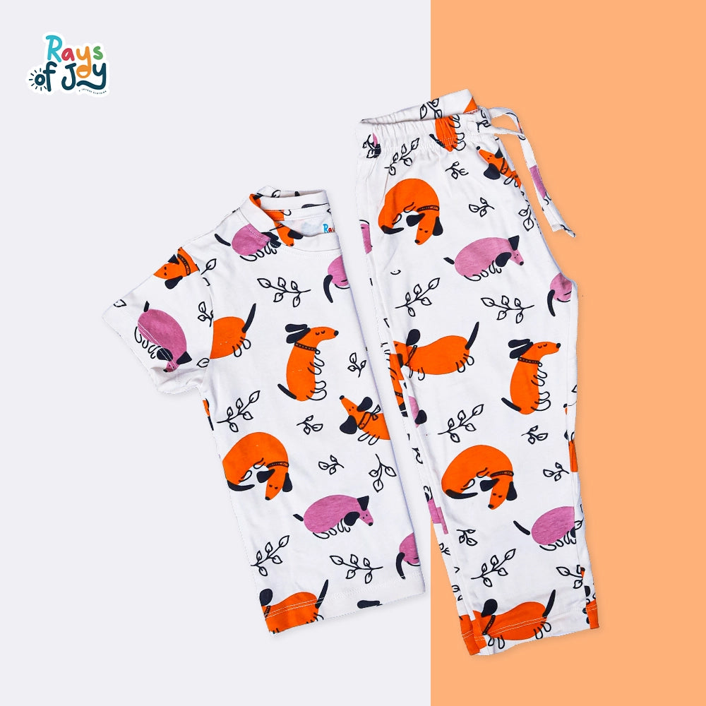 The "Canine Cuddle Tee" is a delightful Coord kids set designed for comfort and style. Featuring a playful canine graphic, this tee is crafted from soft, breathable fabric, ensuring all-day wearability for active children. Its vibrant colors and fun design make it a perfect choice for casual outings or playdates, while the relaxed fit allows for easy movement. Ideal for dog lovers, this charming tee encourages imaginative play and a love for pets.