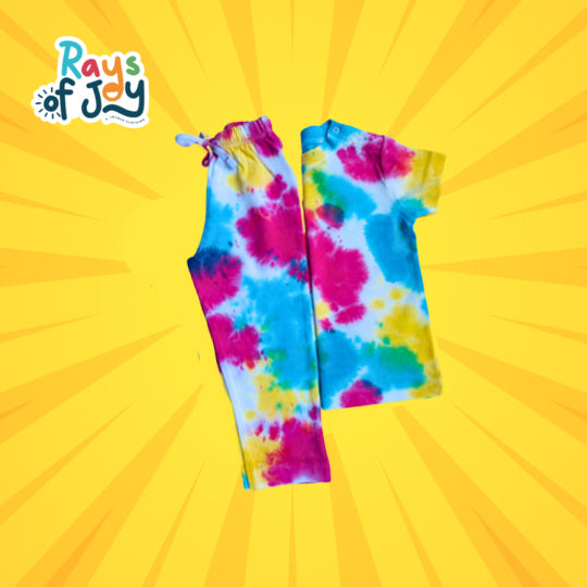 This color splash print coord set for kids is a fun and vibrant addition to any child's wardrobe. The set includes a comfortable top and coordinating bottoms, both featuring a playful and colorful die print. Made from high-quality, durable materials, this set is perfect for everyday wear and is sure to become a favorite in any child's closet. Whether for playtime or a special occasion, this coord set is both stylish and practical, making it a must-have for any young fashionista.