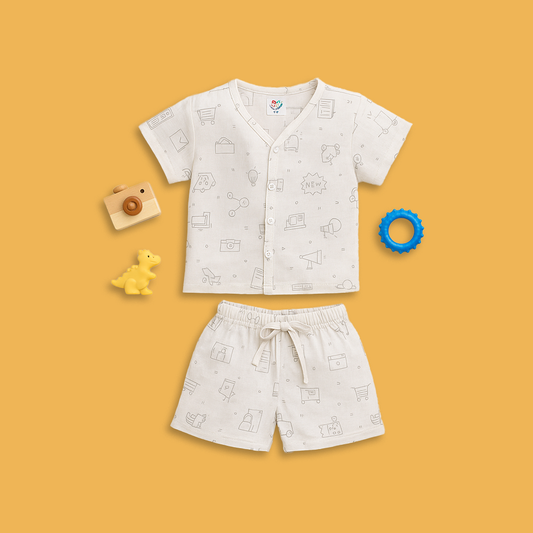 Add a touch of fun and playfulness to your child’s wardrobe with this Quirky Doodle Print Kids Wear Set. Designed with lively sketch-style prints, this cream outfit brings creativity and comfort together. Crafted from soft, breathable fabric and sustainably stitched, it’s the perfect everyday outfit for your little one.